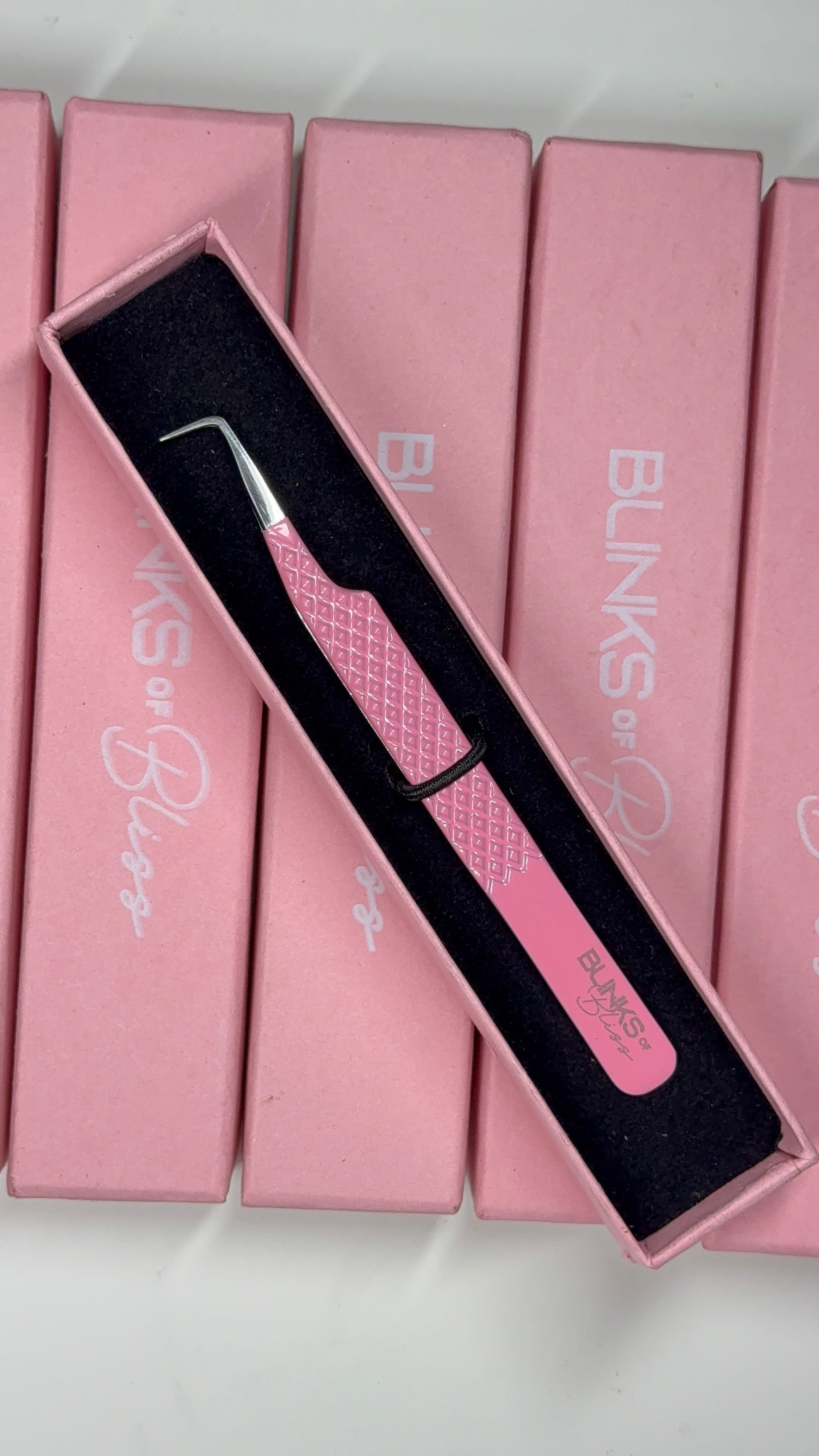 Slim 90 degree L shape Volume tweezers, perfect grip for easy pick up of lash fibers for any lash set. Perfect width to prevent hand/ finger fatigue. Each pair of tweezers is hand tested before it is sold.